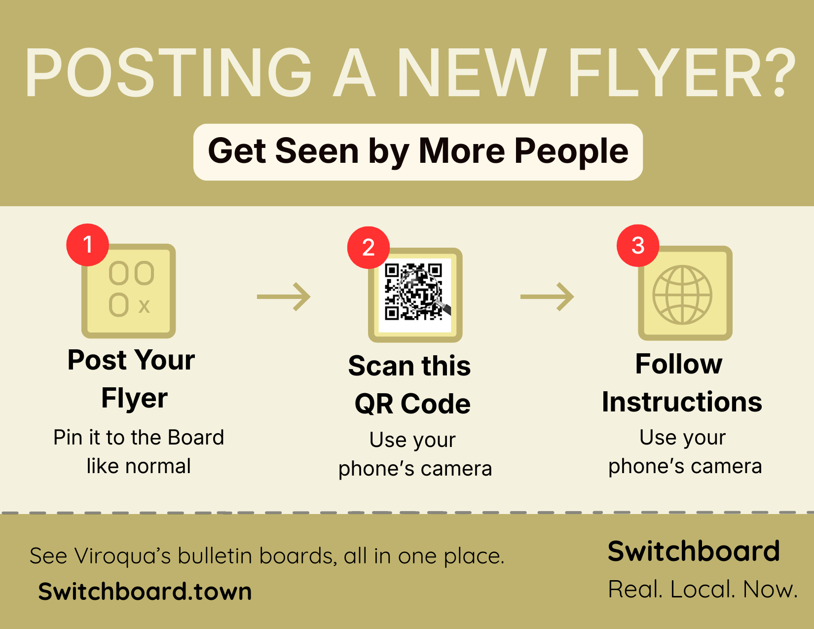 Each bulletin board has its own unique QR code. You must physically visit the location and scan the QR code posted there to update that specific board.
